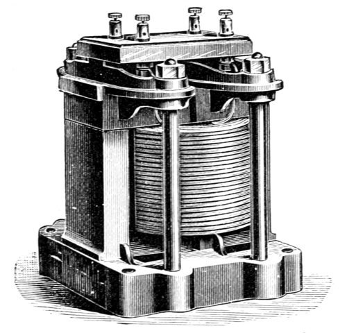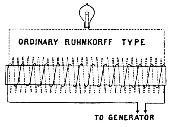 The principle underlying all transformers is that of the induction coil invented by Ruhmkorff in 1842, but described by Faraday in his “Experimental Researches,” published in 1831-2.