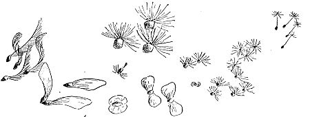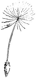 If you look carefully at the part of the dandelion that flies about, you will see the little brown seed case at one end, shaped something like a tiny cucumber, and with little teeth near its top.