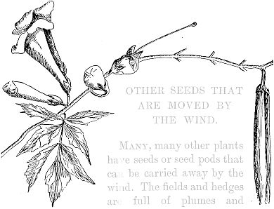 Plants eat what is in the soil, and each kind of plant needs some particular earth food. When plants of one kind are crowded too closely in a place the earth is often impoverished, and the plant might die out if it were not able to find a fresh growing place. Then, again, if the seeds always fell close to the parent plant, the earth would soon become too crowded to support more than a very few new plants.