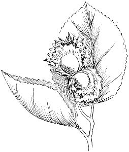 The nuts grow in prickly burrs, two or three in a burr. When the nuts are ripe in the fall, the burrs open to let them out. As everybody knows, they have a thin shell and a sweet kernel. They are sometimes boiled and sometimes eaten raw.