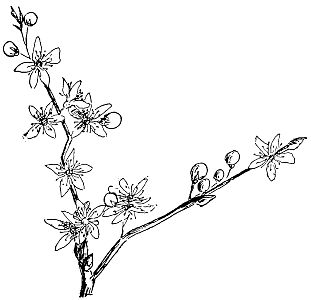 Cherry trees have beautiful white blossoms that come early in the spring, and the peach trees have lovely pink blossoms. The peaches bloom the earliest of all, and as their flowers come out before the leaves, they turn the world into a maze of pink beauty in the parts where the peach orchards are.
