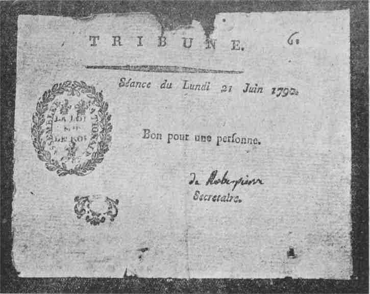 | Billet d'entrée à l'Assemblée nationale | 121 |