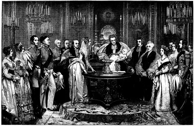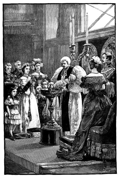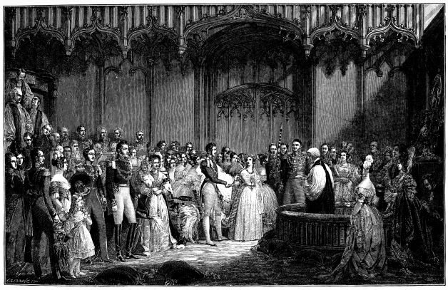 For some time after their marriage, the Duke and Duchess of Kent resided abroad, chiefly from motives of economy, the allowance of the former being{7} restricted within narrow limits by the servile Parliament of that day, owing to his political independence. In view, however, of an expected event, the Royal couple returned to England in the latter part of April, 1819, so that their child should be “born a Briton;” and, as we have said, the future Queen of England drew her first breath on the 24th of May. The Duke of Kent had been long estranged from his brother, the Prince Regent; but a reconciliation took place shortly after the birth of the Princess Victoria. The infant was christened on the 24th of June at Kensington Palace, where she had been born; on which occasion, the gold font was brought from the Tower, and the draperies were removed from the Chapel Royal, St. James’s. Chief among the sponsors were the Prince Regent and the Emperor Alexander of Russia, the latter represented by the Duke of York. It was in compliment to the Czar that the infant Princess received Alexandrina as her first name. In subsequent years, however, this Russianised Greek appellation was wisely abandoned, as unfamiliar and unwelcome to English ears, and the far nobler-sounding “Victoria” took its place. The second name, now famous throughout the world, is of course pure Latin, and no more native to our race than Alexandrina. But in a certain sense we are all Latins—we of the West of Europe; and the accents of the Imperial tongue are familiar to our ears. The meaning and sound of “Victoria,” moreover, are strikingly appropriate to the sovereign of a great Empire; and the omen has, on the whole, been happily fulfilled under the sceptre of her Majesty, not merely in the triumphs of war, but also in the victories of peace.