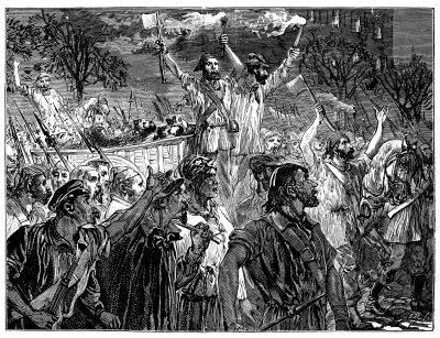 [105] “It is a peculiarity of Irish rebellion that it counts so much on the co-operation of women, who are to be nothing less than unsexed for its purposes. “Women are to squirt vitriol, and women are to put on hoops—not hoops on their own persons, but hoops on the persons of her Majesty’s soldiers, hoops wrapped round with turpentine, steeped in tow and fired.... The Felon newspaper has run its short course. An apter name should be chosen for the next organ of the Mitchel doctrines. The Fiend should be the title.”—Examiner.