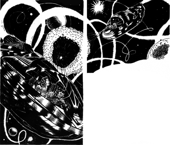 Through the dome-peak I could see Rollins' ship, going in the opposite direction from us, hurtling past us. Two hundred miles off. In a moment it had passed and was out of range. Then it was turning, mounting in a great arc and hurtling back at us!