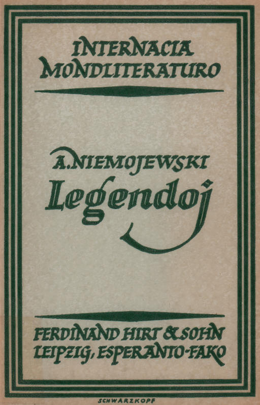 Niemojewski, A.: Legendoj. El la pola originalo trad. B. Kuhl. Kun antaŭparolo de Antoni Grabowski. 2a, korektita eldono. 1923. 74 paĝoj. Kartonita.