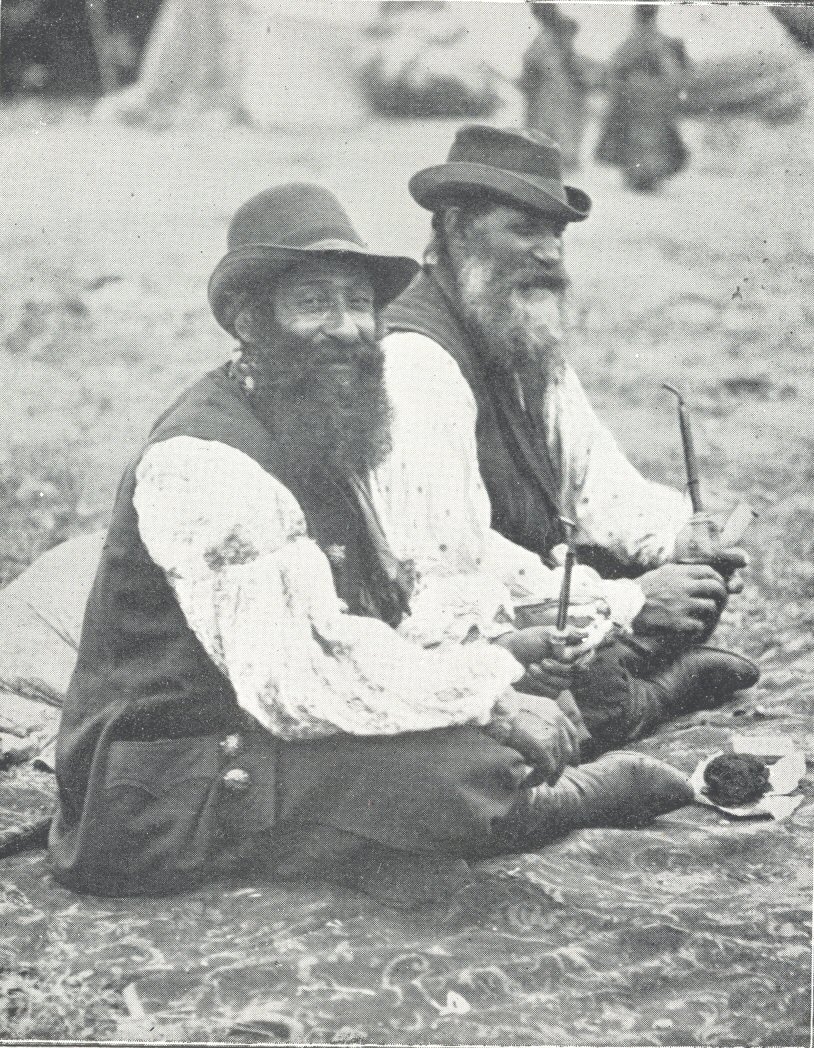 The discussions were as solemn as those of the mother of parliaments at Westminster, and p. 30much more sincere, although they were neither opened with prayer nor encumbered by any decorative formalities. If the chief was chairman—and he sometimes enthroned himself upon an upturned cauldron—his services were seldom required either to keep order, which was amply secured by the native dignity of the members, or to direct a debate that had no tendency to stray from the one subject which was uppermost in all their minds. Generalities that had no concrete application to their trade did not interest them, and they would have refused to send a representative to the congress which was held in Hungary in 1879 to deliberate on the common interests of Gypsies everywhere. Sometimes when Russians visited the camp the coppersmiths would listen so eagerly to long accounts of events in the outside world that it seemed as though the divan was their newspaper or club, and stood to them in the same relation as the “crack i’ the kirkyard” to Scottish farm-folk a century ago, or as his favourite public-house to the British workman. But in truth only those facts really interested them which affected their work and industry, and most of what they heard passed in at one ear and out p. 31at the other. They were greedy for knowledge of the wealth of nations, the size of cities, or the trades by which towns prospered; they collected scraps of paper on which chance acquaintances had scribbled the addresses of factories; and in fact all their conversation and all their thoughts were concerned with the problem of work and where to find it.