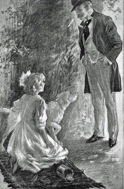 NEITHER boy nor dog paused till they came to the dusty road. There Bouncer stopped and ran excitedly about the spot where the big man had taken May Nell in his arms; doubled back on his track, stopped again, and looked up at Billy, perplexity written all over his face. Billy encouraged him with word and caress; but he came at last, put his nose against Billy’s knee, and whined apologetically.