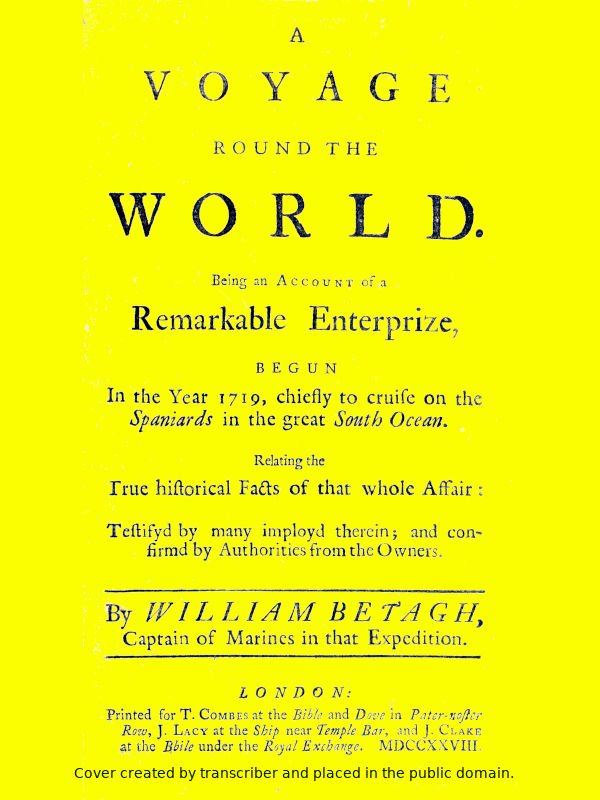 The following book is a united journal of two ships, written chiefly to undeceive mankind in the spurious account of a voyage round the world, publish’d by captain George Shelvocke: which account is not only injurious to me, but is intirely the most absurd and false narrative that was ever deliver’d to the publick. And surely a man may be excus’d for setting the world right in any public affair; much more in an enterprise, where the credit and dignity of his country are concern’d. And if our resentments are allow’d to be equal to injuries receiv’d, what must mine be, when stript of property and good name? Both which the said Shelvocke has done his utmost to accomplish: And though some of this treatise is to obviate his many abuses and forgeries, yet I have endeavoured to make even that part entertaining; to avoid giving the reader a mere dry story of his wickedness.