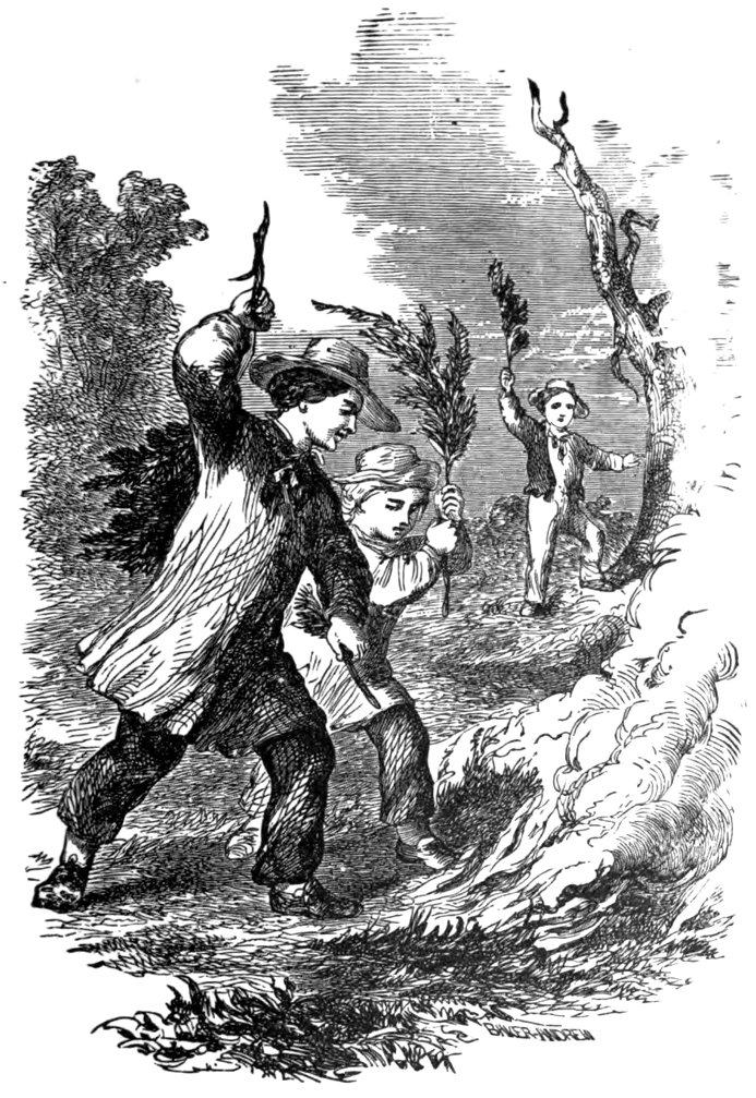 “At last, one night it got so near that my father said that he did not know but that he ought to sit up and keep watch; but the wind shifted before bedtime, and blew it off in another direction, and so he went to bed.