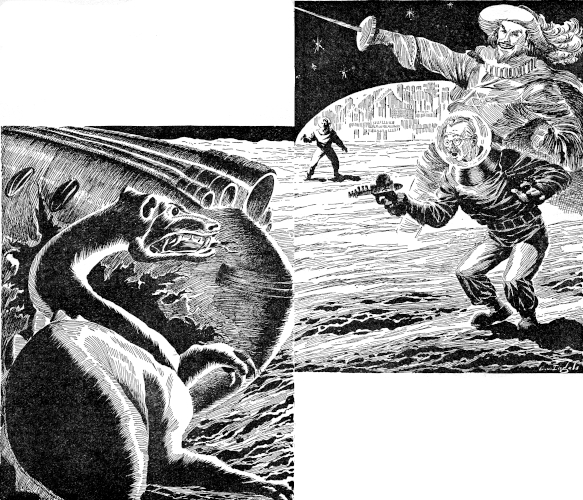 The Prowler swept down the street, hoofs clattering like hammer blows. Ahead of them the inner lock swung open. As the Prowler bulleted into the entrance tunnel, the outer lock swung out and for a few wild seconds air screamed and howled, rushing from the city into the vacuum of space.