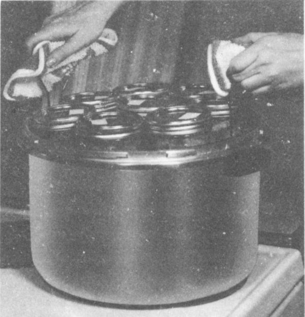 Before canning, jars must be thoroughly clean. It is not necessary to sterilize them before they are filled, however. Processing at the recommended steam pressure sterilizes both the containers and their contents.