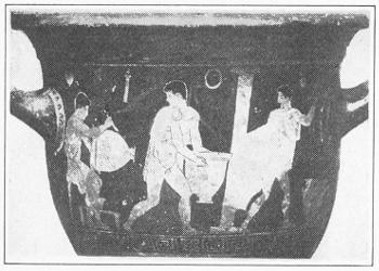 [54] Cf. Antike Denkmäler, II, pl. 8; Journal of Hellenic Studies, XII, 1891, pl. XX, and XXXII, 1912, pl. VII; Furtwängler u. Reichhold, Griechische Vasenmalerei, I, pls. 19 and 24, III, text, p. 19, fig. 7; Notor, La femme dans l’antiquité, p. 253; Wiener Vorlegeblätter, 1889, pl. XII (on Ficoroni cista); Hartwig, Griechische Meisterschalen, pl. LXVII, 3a and 4, pl. LXIX, 2a-c; Daremberg et Saglio, Dictionnaire IV, part 2, p. 1160, fig. 6252; etc.