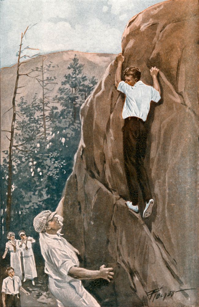 The Bursley game was to be started at two o’clock. At half past ten that morning it became known that Terry Doyle, who had been missing from his usual haunts for ten days, had caught up with his studies and that the faculty had reinstated him. The tidings brought vast relief and satisfaction to Maple Hill. Without Terry Doyle defeat was possible; with him victory was assured. So argued the school. The twins heard the news over the hedge from Tad, who, having nothing better to do that morning, was trying to kill time by manufacturing a bow from a section of barrel stave.