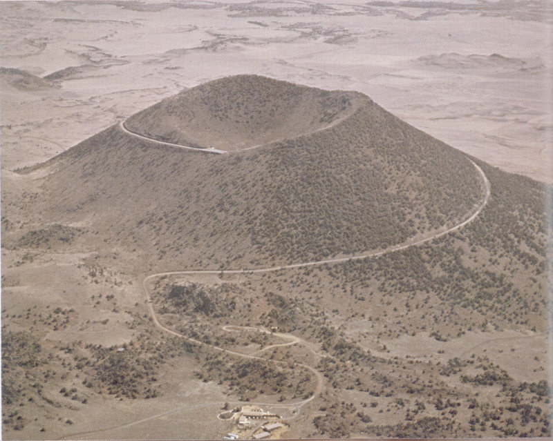 Figure 12.—Capulin Mountain National Monument in northeastern New Mexico. This huge cinder cone, which erupted between 4,000 and 10,000 years ago, rises more than 1,000 feet above its base. Photograph by R. D. Miller, U.S. Geological Survey.