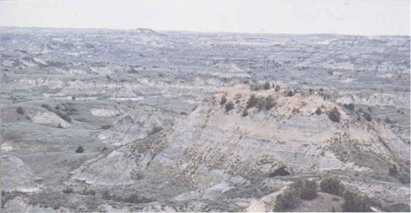 Figure 27.—Badlands of the Little Missouri River in South Unit of Theodore Roosevelt National Memorial Park, N. Dak. View looking northwest from Painted Canyon Overlook along Interstate Highway 94, west of Belfield.