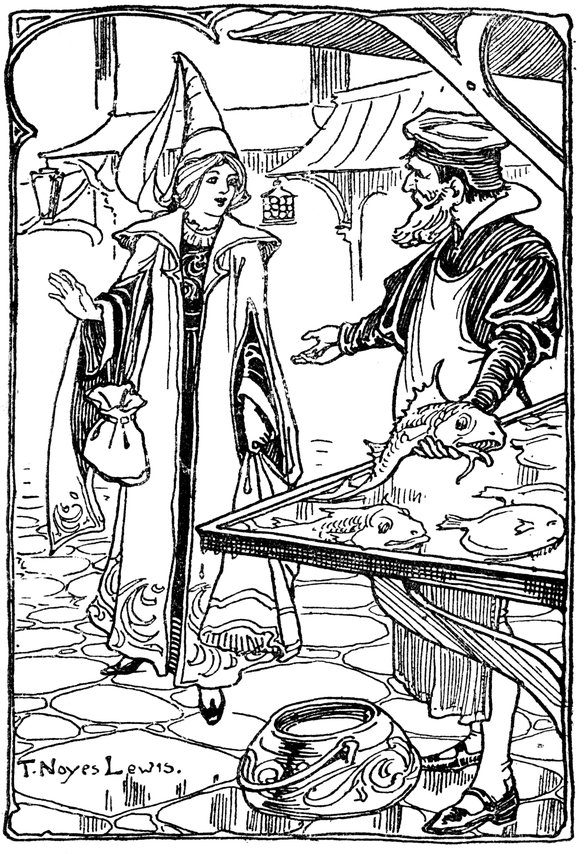 36To begin with, I must tell you that there is in the sea a shoal of magic fishes. Some people say that there were originally in the shoal ten thousand fish, other people put the number down at only seven thousand five hundred, but that really doesn’t matter much; but what does matter to the story is this, that Lady Elizabeth bought one of these magic fishes in the market, and eat it that same night for her supper.