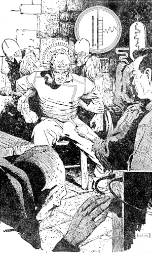 The Martians gathered around the two Earthmen; attached electrodes from the alien machine to Tharp's head.