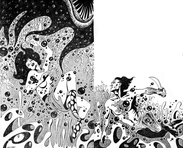 He knocked Komso's arm aside and whipped his fist toward the smirking face. It struck, but only a glancing blow. It left him floundering off balance. The water around them glowed with increasing brightness as they twisted and turned.
