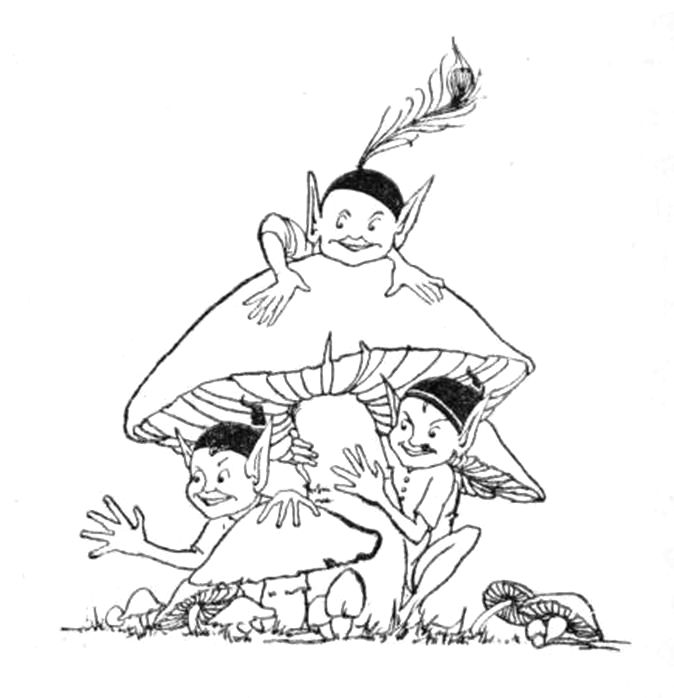 PUCK was sitting on top of his favourite toadstool, balancing a blade of grass on his nose. The fairies were watching him do one trick after another with delight. He wasn't the least bit cross now.