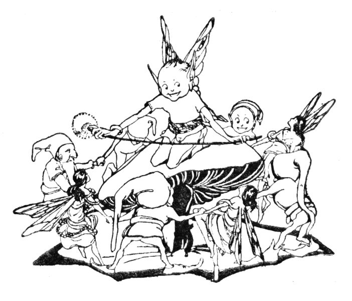 Before he could say another word the fairies were all flying away in the air. Tinkle, tinkle!—you should have heard their tiny laughter!