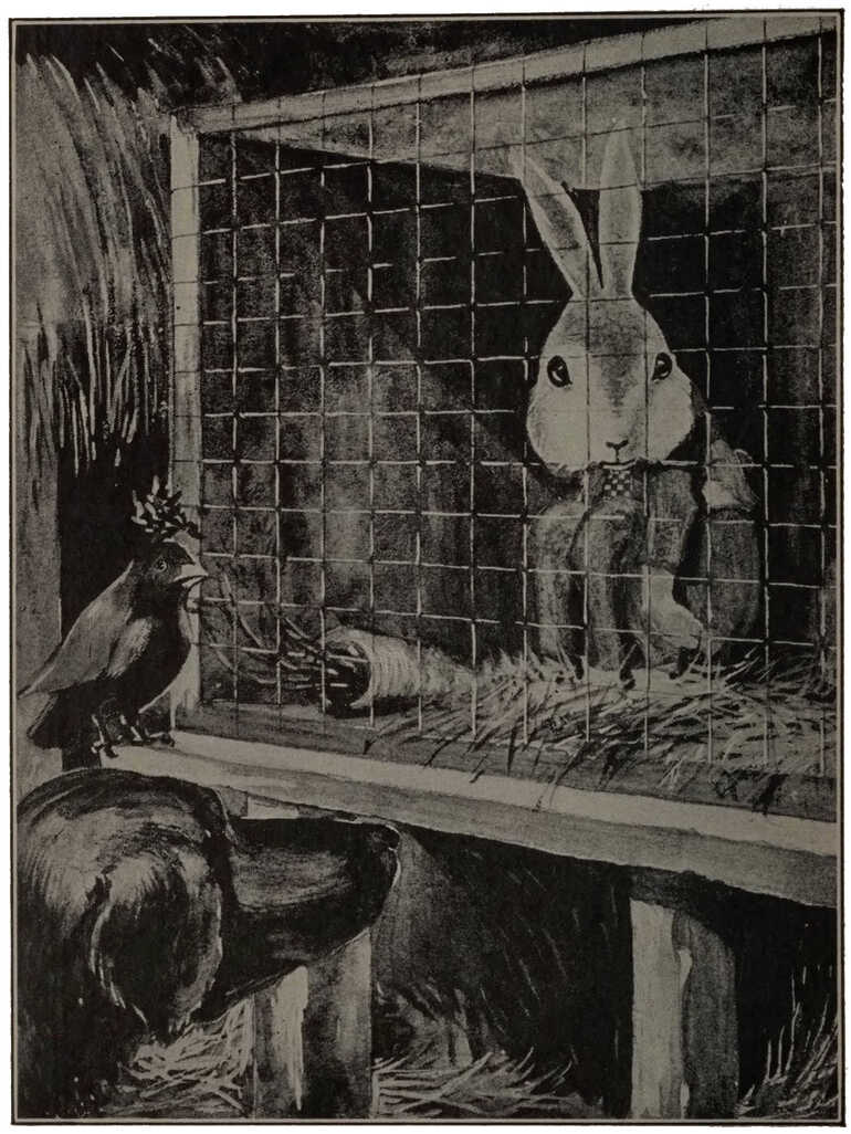 Tommy Peele had tried to make his cage a comfortable one for Nibble to sleep in. But he didn’t know that a proper rabbit hole has fresh air blowing into it from above. The cage had only one dark, stuffy corner to hide in, or the open part behind a wire front. And there Nibble crouched in the hay Tommy had given him. But he kept cheerful. Chirp had said, “We’ll see what can be done about it,” and Nibble knew the clever Sparrow. So he just made a little song of the words until he sang himself to sleep with them.