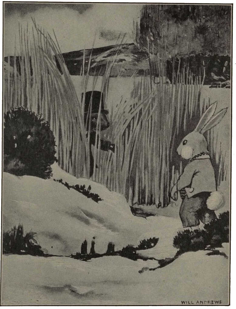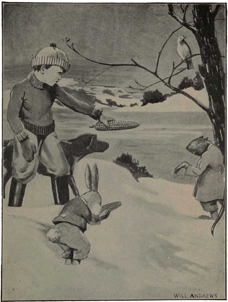 Quite a long while ago I promised to tell what Tommy Peele was doing in the Broad Field when he let Nibble Rabbit’s storm party out of the little cornstalk tent. Well, to begin with, he was looking for the tracks of the woodsfolk. But as long as the snow lay deep on the ground he didn’t find many.