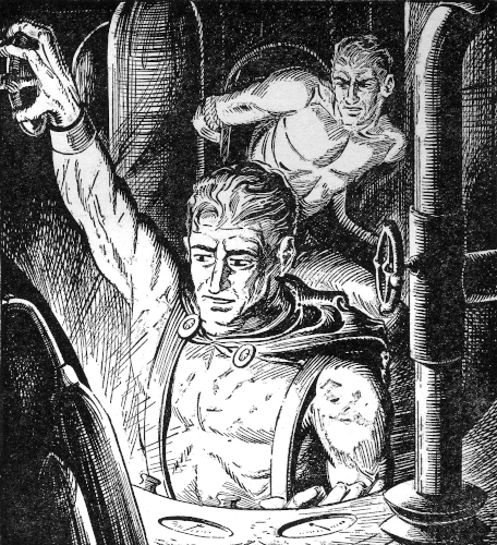 Suddenly the ship had gone haywire. Neither Carl nor Rex was technician enough to understand that the etheric warp engines had been overdriven. The engines, down to the last accumulator cell, exploded with a mighty, tearing roar that blew gaping holes in bulkheads, deck-plates, and overheads. Carl was knocked out, but Rex held on.