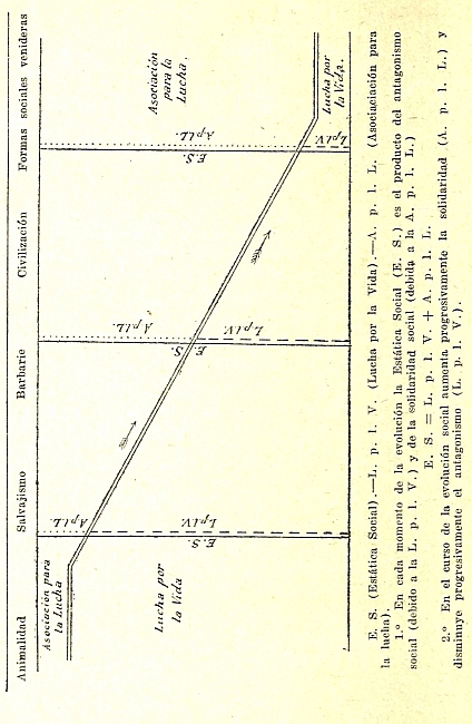 Se impone señalar frente al principio de la lucha por la vida, el desarrollo de ese otro que aparece ya en las especies animales más prósperas. Rudimentario en las primeras etapas de la asociación humana, por la escasez de los medios de subsistencia naturales y el insuficiente desarrollo de la producción artificial, tiende a adquirir cada vez mayor importancia y se acrecienta en las formas superiores de civilización.