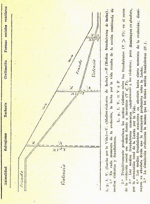 Un cuadro gráfico dará expresión más tangible a estas ideas sobre la evolución de los medios violentos y fraudulentos en la lucha por la vida, en su doble concepto absoluto y relativo. (Diagrama II.)