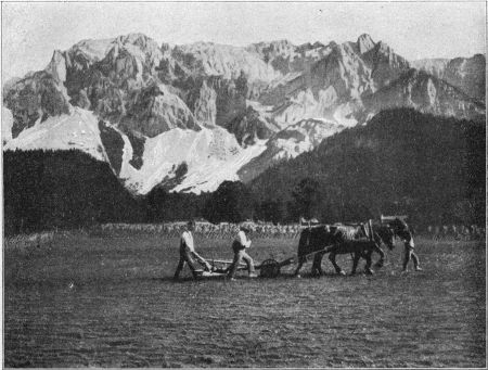 Weiter dem Osten zu, auf einer noch rauheren Hochebene, haben die markomannischen Fäuste und die glaubensstarken Köpfe der Oberbayern nicht verhindern können, daß dort ein sonderbares Großstadtgebilde aufblühte, in dem neben einem angeborenen Sinn für Darstellung eine große Zahl von Männern und Frauen in zähem Lebenskampf hochwertige Kulturarbeit leistet, und zwar von solcher Bedeutung, daß die »Kunstmetropole des Südens« den Namen eines modernen »Capua« leicht auf die Achsel nehmen kann. Durch den blauen Alpenkranz, der sich um die Stadt schlingt, kommt Deutschland auch noch in die Reihe jener Staaten, die nicht ohne den Diademschmuck ewigen Schnees geblieben sind.