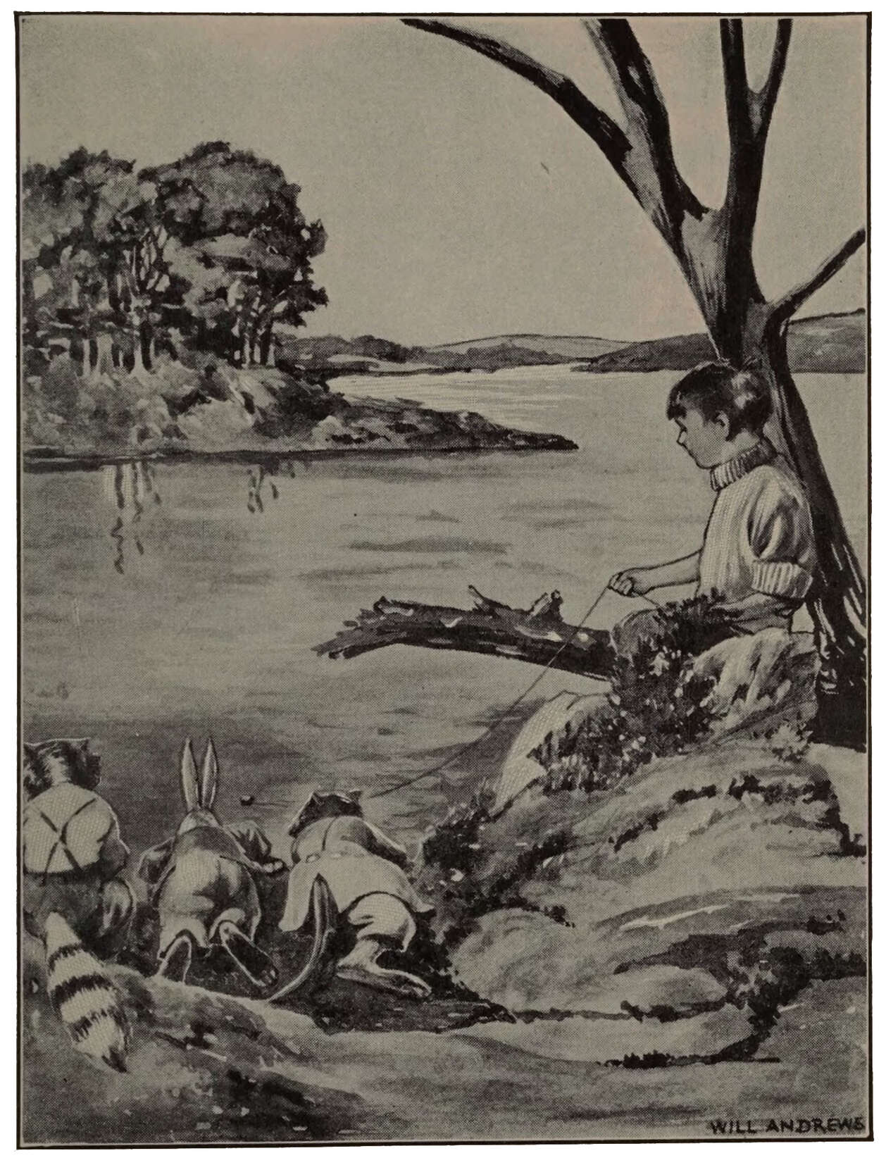 “Difference?” exclaimed Doctor Muskrat, who’s an expert at any kind of fishing. “It makes all the difference in the world. The shellbacks don’t care who’s above them so long as there’s water enough to swim in, but the finny folks won’t come where there’s a moving shadow until they know the meaning of it. Tell Tommy to move farther out so that branch reaches over him.”
