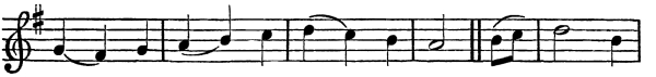“Folk-song,” or “people’s song,” may be understood to imply, in its broadest sense, as Volkslied does to the German, a song and its music which is generally approved by the bulk of the people. Thus any current popular drawing-room song, or the latest music-hall production, would naturally hold this meaning, though it would not come into line with the other conceptions of folk-song, and probably not altogether satisfy the German ideal. Then, what may fitly be called “national” songs have a strong claim upon the word. “God save the King,” “Home sweet Home,” [Pg 10] “Tom Bowling,” “Heart of Oak,” and countless others that form our national store of song and melody could under this meaning be called folk-songs, and this might come closer to the German idea of a Volkslied.