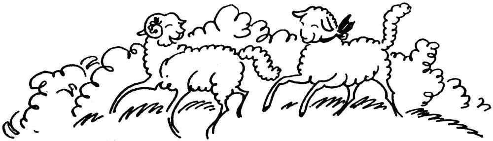 Ein junges Schaf lief an der Seite des Böckleins glücklich über die Wiese. Es schmiegte seine feuchte Schnauze dicht an die Nase seines Gefährten, und die Löcklein ihrer weichen, wolligen Felle kräuselten sich ineinander. Das gefiel dem Schäflein, das neben seiner Mutter graste.