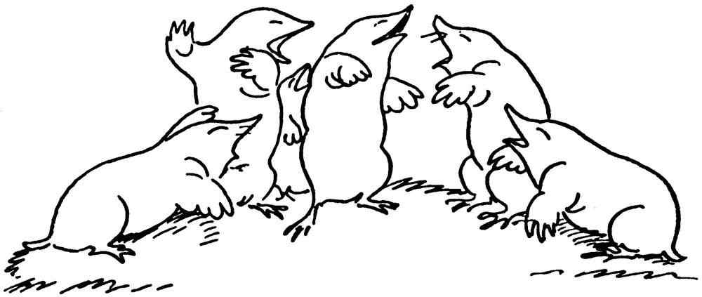 »Nachbarn,« sagte der Zaunkönig, »ich und mein Weibchen, wir haben uns noch nie gezankt! Sie hat freilich einen harten Kopf und weiß was sie will. Aber ich bin der Gescheitere, ich gebe nach. Gelt, Frau!« Der Zaunkönig glaubte wahrhaftig, was er sagte.