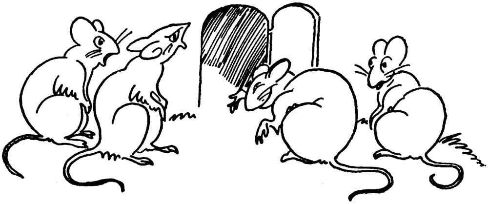 »Herr Schwiegervater, ist es nicht merkwürdig, wie der schwarze Fleck auf dem Pelz meiner Frau schon verblaßt ist?« Der Vater der weißen Maus nahm ein Vergrößerungsglas, sah hindurch und sagte mit einer Stimme, die ganz ölig war vor Freundlichkeit: