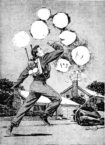 He was a big man—big, and heavy. I was under the handicap of the heavy force-field generator, which I knew I had to keep from his grasp or else I was finished. All he had to do was to smash the generator, and I'd be roasted the next second.