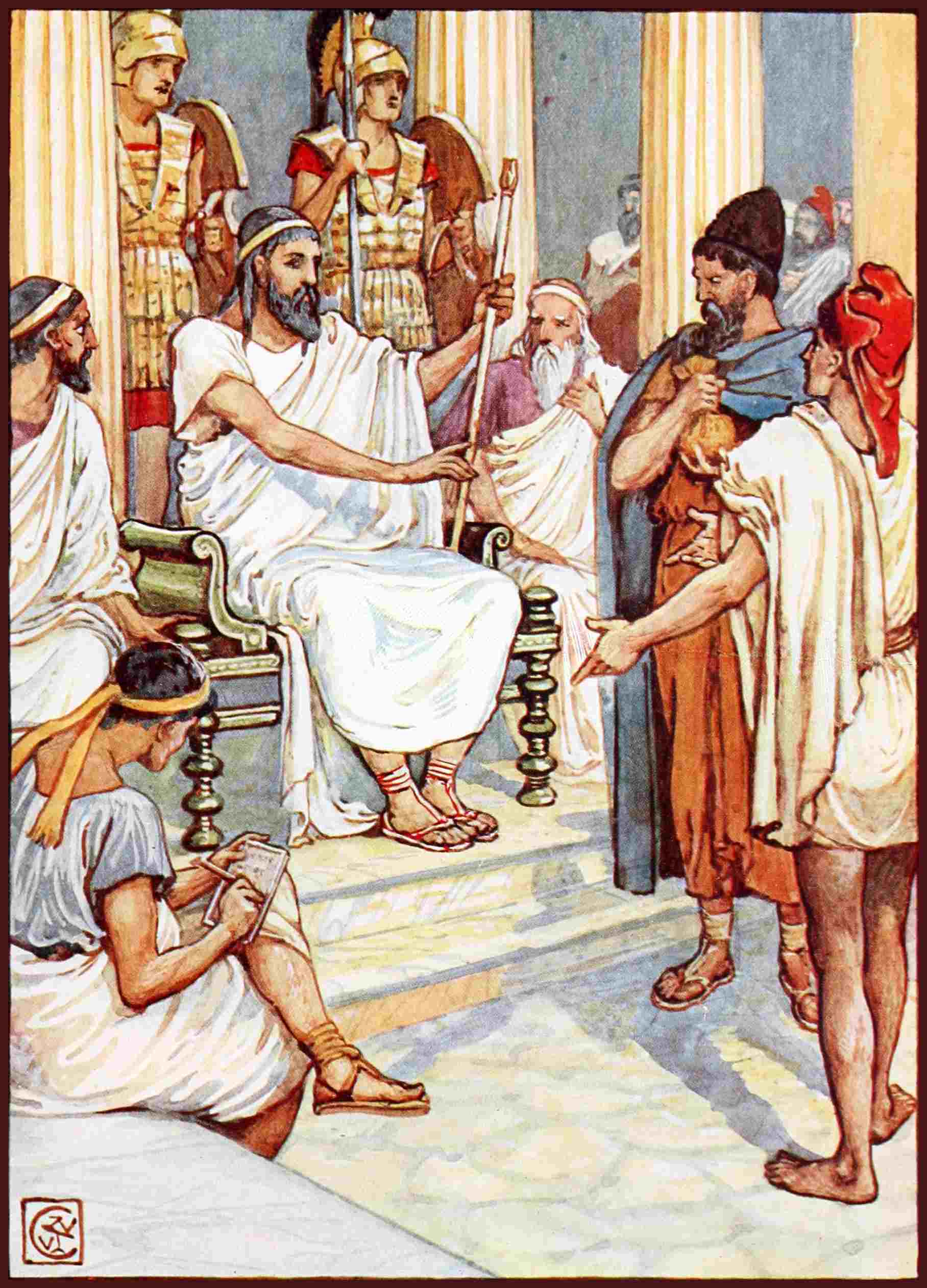 The king, in sudden anger, sprang from his seat, down among the angry throng, and ordered thirteen of the ring-leaders to be put to death. He then bade the others go away if they wished. They had been only poor shepherds on the hills of Macedon, he reminded them, until his father Philip had made them rulers of Greece. He had shared with them the wealth of the East, and had kept nothing for himself, save his purple robe and his royal diadem.