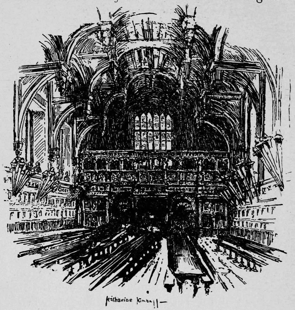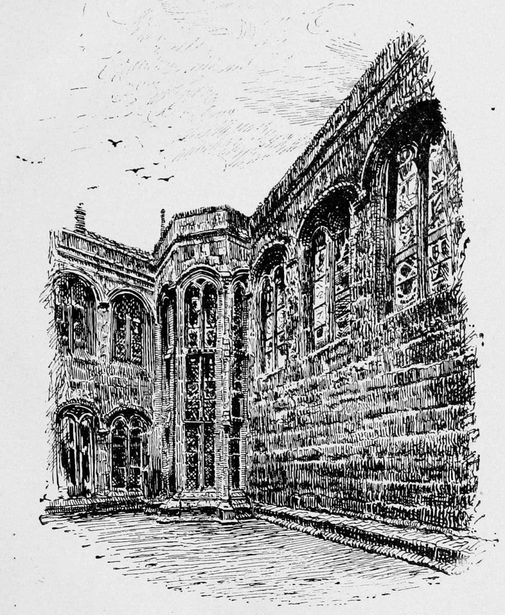 The reconstitution of Crosby Hall was never finished; first because of the death of King Edward, who took a great interest in the{8} scheme, and then owing to the war; but there it stands, its perpendicular lines, mullioned windows and oriel and the wonderful oaken roof making it one of the best examples that remain to us of fifteenth-century domestic architecture.