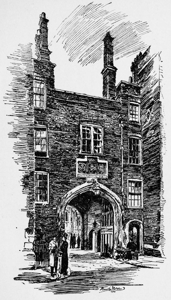You step through it into a remote space where a mediæval building stands in the midst of the little rock gardens planted by the Belgian refugees to while away their anxious, tedious hours. Many men have passed through the old hall since Sir John Crosby built it, for at different times it had belonged to the Duke of Gloucester (Richard III.), Sir Thomas More, his son-in-law William Roper, and various ambassadors and nobles. In 1609 it was the home of that Countess of Pembroke whose charms evoked from William Browne the epitaph so often attributed to Ben Jonson: