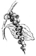 The pepper plant is a vine, of the order piperaceæ, which grows wild in China, is also indigenous to Malabar and other islands of the East Indies, and has been introduced into the West Indies. The plants require a rich moist soil, bearing after the fourth year and continuing fruitful for from eight to fourteen years. The most famous of the pepper islands are the Penang, which furnish more than half the amount produced by the entire East Indies. Only the berries of the pepper plant are valuable and these, being gathered before fully developed, have a wrinkled appearance when dried. The berries used for white pepper are decorticated either in the islands or in London and reach the United States ready for grinding. The finest grade passes through more than twenty different operations before it is considered marketable.