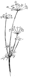 Fennel is an umbelliferous plant, native to portions of temperate Europe and Asia, especially Portugal. The fruits possess an aromatic flavor while the tender shoots are used for salad. The plant and its culinary value was well known to the Romans, and it is to-day cultivated in both Europe and America. The fruits of the European fennel are used in the making of an aromatic drink, while in America the plant is chiefly cultivated for its leaves. It has been said that fennel is to fish what mint is to lamb, and in cer[Pg 18]tain of the southern states mackerel is considered of too strong a flavor to be eaten unless cooked with fennel. The fennel thus used grows wild, the green leaves being tied in bunches and boiled with the fish.