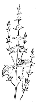 Thyme, a little under shrub native to the Mediterranean countries, is allied botanically to sage, summer savory and sweet basil. It possesses very small leaves and whorls of tiny, lilac-colored flowers, from which thymol or oil of thyme, a valuable germicide, is distilled. In flavor it is fragrant and aromatic and it may be readily cultivated in gardens. The wild thyme of our banks “where ox-lips and the nodding violet grows,” is a different variety of the[Pg 20] same order. Its name is derived from the Greek word thumos, meaning incense or perfume.