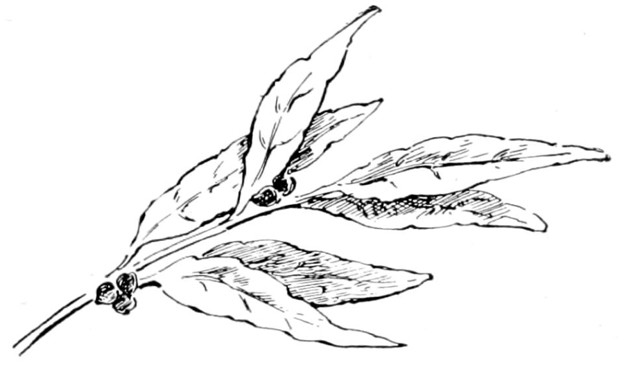 Bay leaves are the leaves of a shrub belonging to the laurel tribe, which grows wild in the Mediterranean countries. Among the Greeks the bay leaf was consecrated to the uses of poetry, heroism and religion. Not until later times was it used as a flavoring for foods and for the decoration of various dishes. It grows wild in certain of the southern states but the leaves are usually exported from Europe, dried. The leaves are used in soups, stews and pickles and, although the average housewife finds it next to impossible to procure them, scarcely a recipe for these articles of food but includes bay leaves among its flavorings.