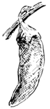 Grains of Paradise are the dried seeds of a reed-like plant allied to the ginger family and indigenous to western Africa. The fruit which contains the seeds is four or five inches in length and of a bright red color. The seed are now never used, excepting occasionally by brewers. Formerly they were esteemed as a spice for cookery and were one of the ingredients of the famous Norwich herring pies of old England. In flavor they are extremely hot and pungent.
