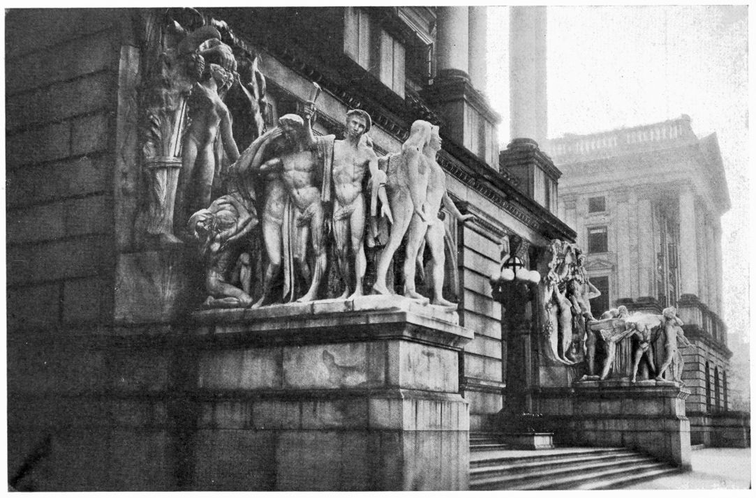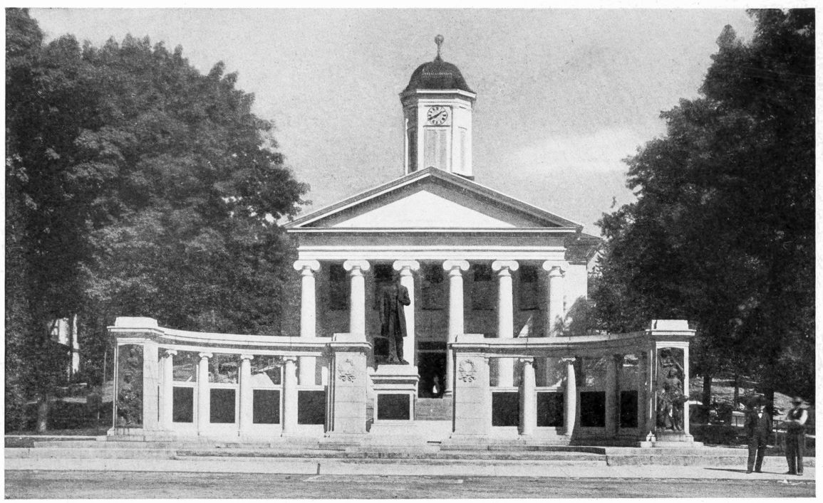 The courthouse, on Washington Avenue near center of town, stands in a square of ground, Romanesque,{507} West Mountain stone, built 1881-84, architect, S. G. Perry. St. Luke’s Protestant Episcopal Church. Wyoming Avenue near Linden Street, Gothic, West Mountain stone, built 1866-71, architect, R. M. Upjohn, New York; contains Tiffany mosaic panel, back of font, “Baptism of Christ,” also Tiffany window in chancel, “The Ascension.” St. Peter’s Cathedral, at corner of Wyoming Avenue and Linden, Italian Renaissance, brick, built, 1866, architect, Joel Amsden; remodeled 1883 by Durand, Philadelphia. Administration Building of the International Correspondence Schools, Wyoming Avenue between Vine and Mulberry Streets, Gothic, West Mountain stone, built in 1898; architect, W. Scott Collins; window by Kenyon Cox, made in 1898, “Science Instructing Industry.”