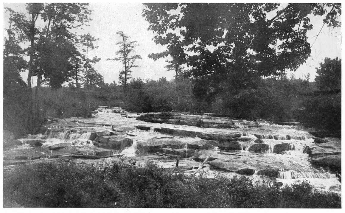 In 1780 Andrew Montour, leader of an Indian party, captured the Gilbert family, twelve persons, and took them over Mauch Chunk and Broad Mountains into{466} the Nescopec path, across Quakake Creek to Mahoning Mountain and over wild and rugged country to Canada; eventually they were all redeemed at Montreal, in 1782, and returned to Byberry. A view of great scenic beauty is from Prospect Rock, over the Nescopec Valley; Cloud Point, frequently covered by vapor, may be seen; near is Glen Thomas with a picturesque Amber Cascade, named for David Thomas, pioneer in the iron trade. Glen Onoko, two miles above Mauch Chunk, with its wild beauty, total ascent over 900 feet, forms the channel for the clear stream which flows over innumerable cascades to the Lehigh; the most noticeable are “Chameleon Falls,” fifty feet high, and “Onoko Falls,” ninety feet high, with overhanging rocks, covered with moss and ferns.