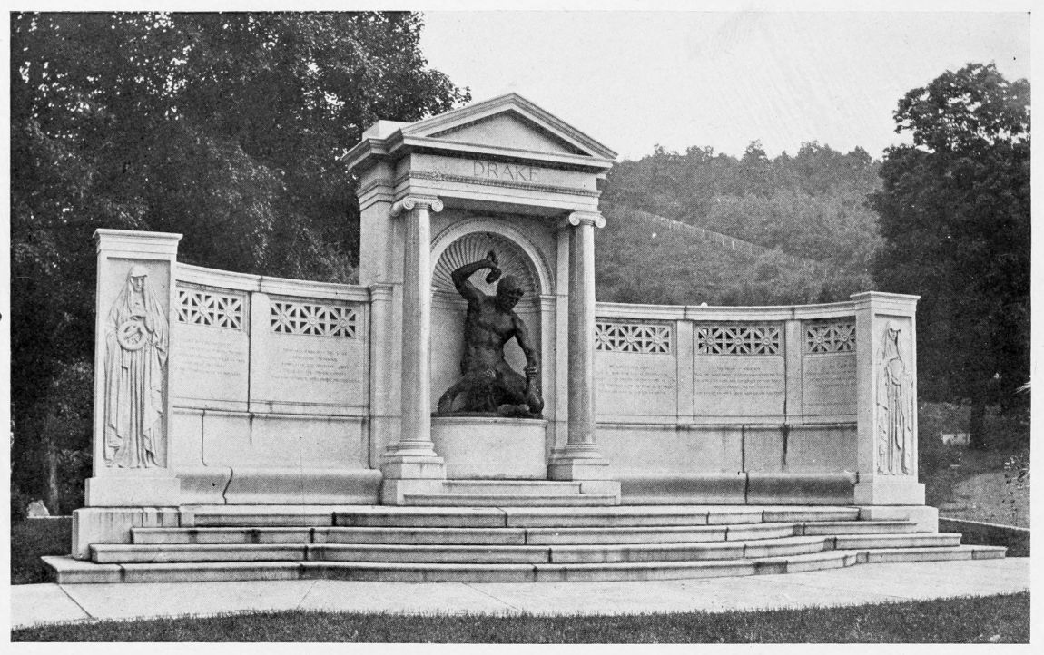Driftwood, near the “Crescent,” a half moon shaped mountain forming sides of the valley for nearly three points of the compass; claims the first settlement by white man within the county, in 1804; in the center of the village, facing the Sinnemahoning Creek, is the “Bucktail” Monument, in memory of Cameron’s sons who fought for the Union, erected by the state in{503} 1908, inscription, “From this town, on April 27, 1861, the Cameron, Elk and McKean County Rifles, under leadership of Thomas L. Kane, afterwards Commanding Officer of the Regiment, later a Major-General, embarked on four rafts for Harrisburg, where they were mustered into the service of the State, and formed the nucleus, about which the Bucktail Regiment of the Pennsylvania Reserve Corps was organized; which during its time of service, was almost continuously attached to the army of the Potomac.”