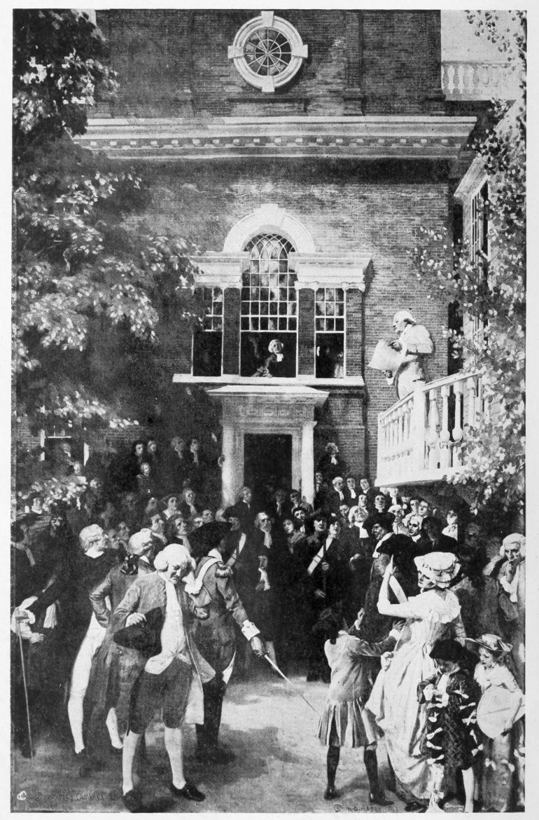The first active protest against the importation of tea, on account of the obnoxious tax, occurred in Philadelphia (not Boston) in 1773. An immense meeting was held in the State House Yard October 16, 1773.{7} Under date of November 27, 1773, a broadside was issued warning against an attempt to land any of the objectionable article. On Christmas Day the ship Polly, Captain Ayres, reached Chester. Captain Ayres was brought to Philadelphia and informed of the situation. On December 27th he started on his return trip to England, taking his cargo of tea with him. The people of Boston held their tea party December 16, 1773, and cast the tea into the harbor, thus entailing a heavy loss upon the innocent merchants.