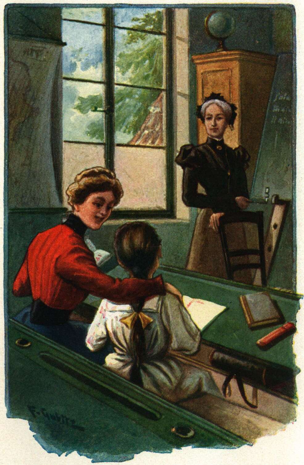 Auf die englische Stunde sollte nach dem neuen Stundenplan ein französisches Diktat folgen; aber anstatt Fräulein Bertrand, die dieses Fach zu geben hatte, erschien zur großen Überraschung der Mädchen eine andere Gestalt. Es war Pfarrer Kern, der Pfarrer, der den Mädchen schon von der ersten Klasse an Religionsunterricht gegeben hatte, von dem auch die meisten Schülerinnen dieses Instituts konfirmiert wurden, und der bei ihnen allen nur „unser Pfarrer“ hieß. Auf dem Stundenplan für dieses Jahr stand aber keine Unterrichtsstunde von ihm, und deshalb sahen ihn fünfzehn Augenpaare erstaunt an bei seinem Eintritt. Der Pfarrer bemerkte es wohl, er begrüßte seine Schülerinnen freundlich und sagte dann: